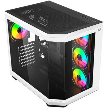 Gabinete Gamer Compact Media Torre Dragonfly Perform Crystal GM590CW / Panel Izq Cristal + Frente Cristal / Blanco